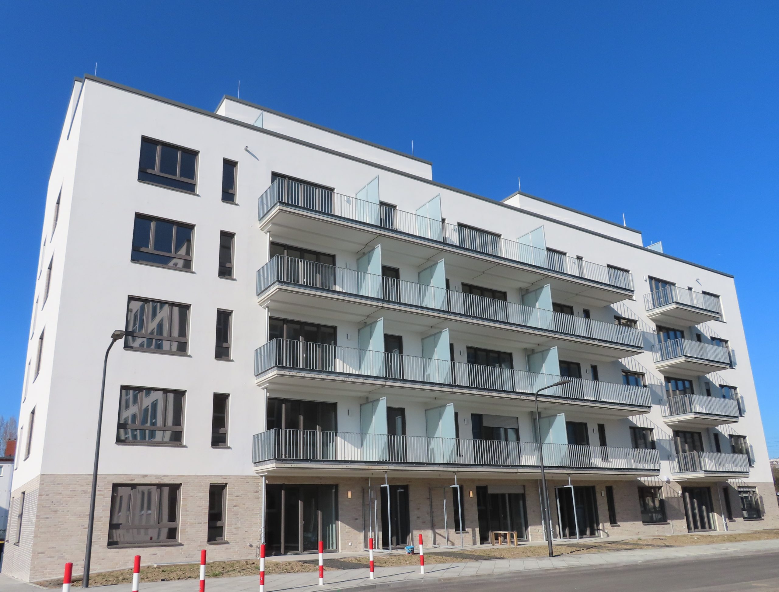 The quarter is being built in line with the German “KfW 55” energy efficiency standard and stands out, amongst other things, for: an innovative heating concept that uses at least 60% waste heat from a neighbouring data processing centre and a maximum of 40% district heating; extensive greened roofs and planted open spaces, including a district square with mature trees
